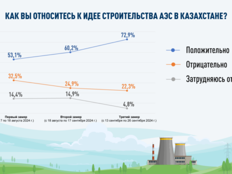 По заказу Казахстанского института стратегических исследований при Президенте Республики Казахстан ОО «НИА «Институт демократии» в период с 13 по 26 сентября 2024 г. провело телефонный опрос. Всего опрошено 1 200 респондентов старше 18 лет. В опросе принимали участие респонденты из 17 областей и городов республиканского значения Астаны, Алматы и Шымкента. В целом большинство опрошенных – 72,9% – поддерживают идею строительства АЭС. На вопрос «Как Вы относитесь к идее строительства АЭС в Казахстане?» практически две трети опрошенных выразили положительное отношение. По сравнению с предыдущими данными, [...]
