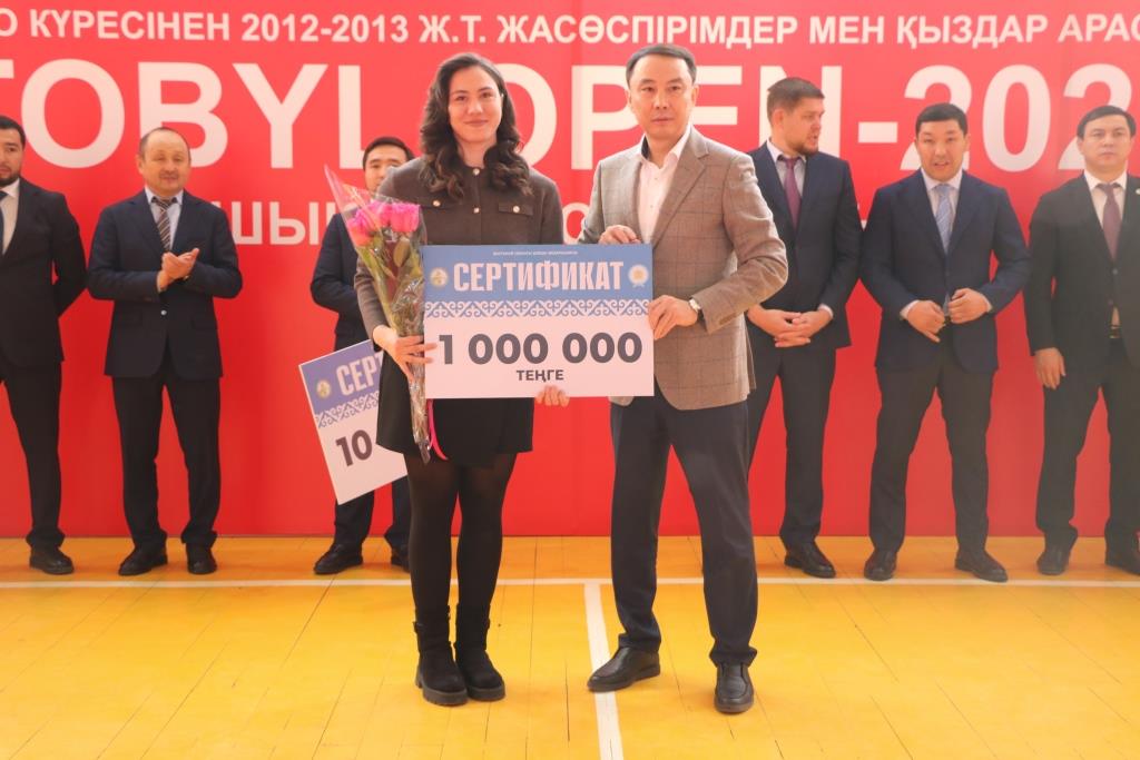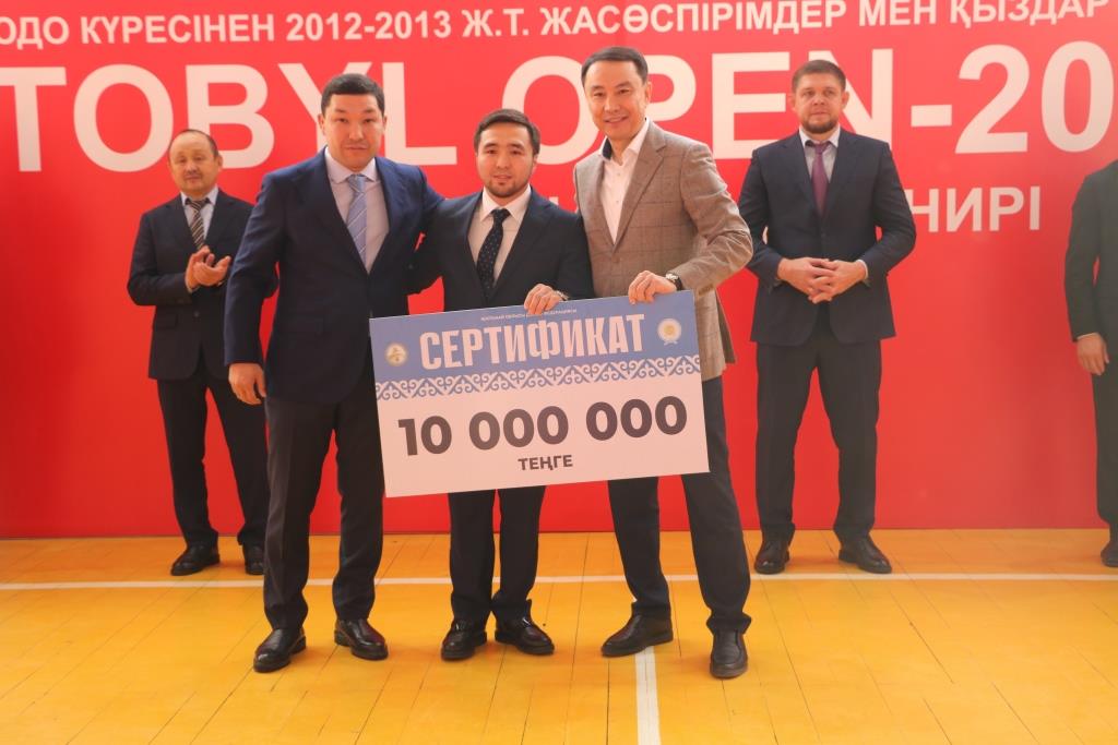В завершение официальной части аким города Марат Жундубаев вручил денежные сертификаты на сумму 10 миллионов тенге олимпийскому чемпиону Елдосу Сметову и чемпионке Республики Казахстан по дзюдо Маргарите Гриценко на сумму 1 миллион тенге.