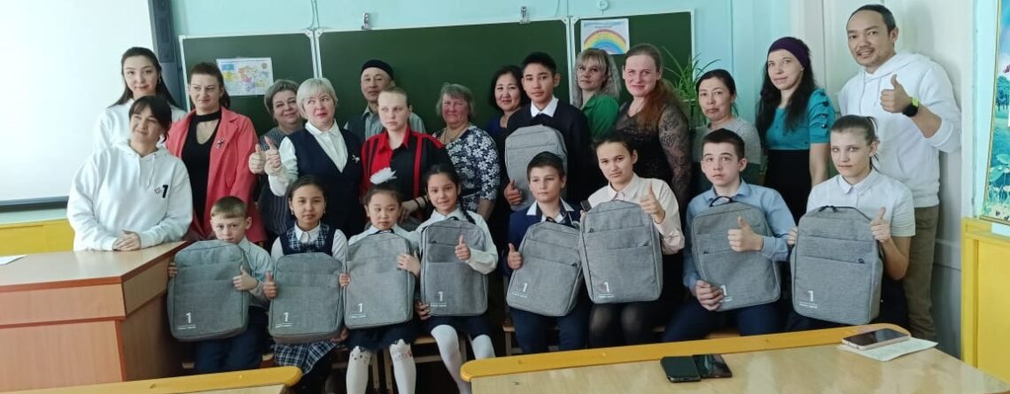 И вот настал торжественный момент. Основатель «Kazdream it holding» Даурен Тулебаев, председатель благотворительного фонда Анна Цыганова и проектный менеджер Ясмин Тагаева передали в пользование 10 ноутбуков с комплектующими нашим школьникам 2-9 классов. В ноутбуки загружены электронные книги, программы для изучения казахского и английского языков, по информационной безопасности.