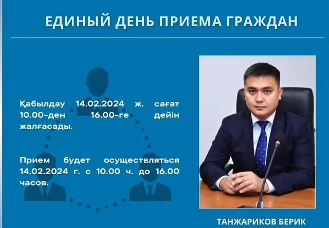 В соответствии с поручением Администрации Президента Республики Казахстан по реализации концепции «Слышащего государства» 14 февраля 2024 года в Доме культуры «Алтын дән» состоится «Единый день приема граждан» акимом Костанайского района Б.К. Танжариковым.
