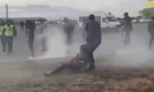 В Казнете появилось видео толпы возле стадиона “Тобол Арена” в Костанае. На кадрах видны потасовка и прибывшие полицейские.