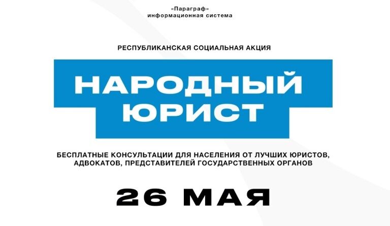 26 мая в 17:00 часов во всех крупных городах Казахстана стартует общереспубликанская акция «Народный юрист».