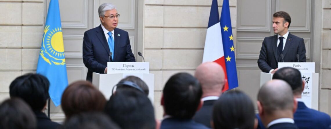 Касым-Жомарт Токаев и Эмманюэль Макрон провели брифинг для представителей СМИ