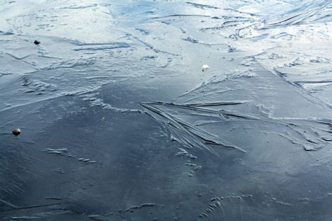 • Тонкий лед обычно темного цвета, может потрескивать и прогибаться под ногами.