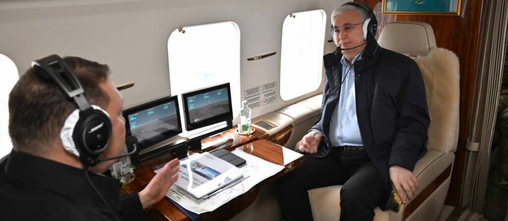 По прибытии Касым-Жомарт Токаев совершил облет подтопленных территорий для ознакомления с текущей ситуацией в регионе.