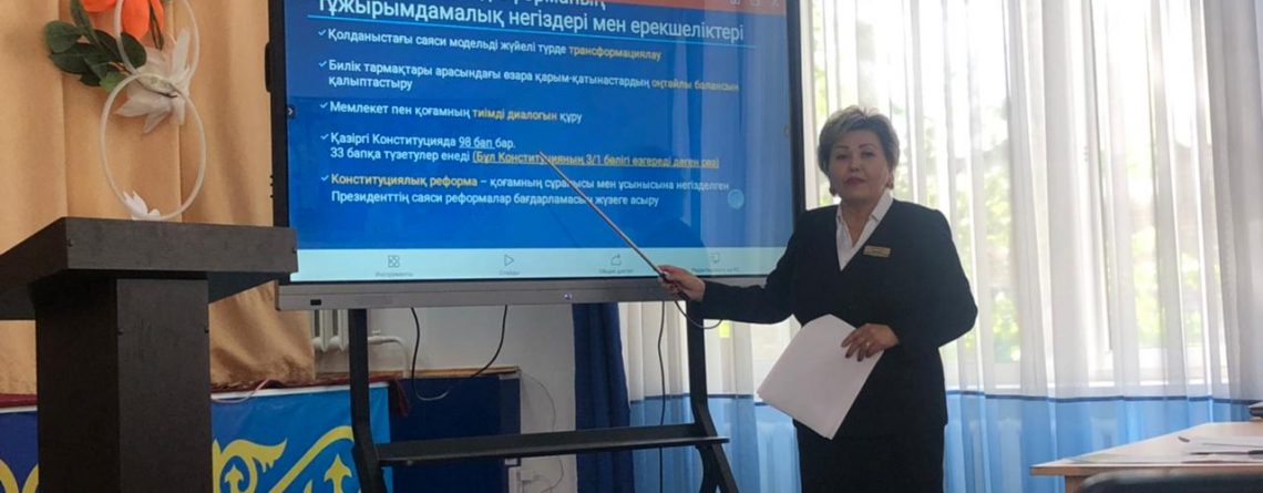 Сегодня в Мичуринской ОШ прошла встреча членов Костанайского районного и регионального партийного штаба с трудовым коллективом школы, членами Мичуринской первичной партийной организации по разъяснению конституционной реформы