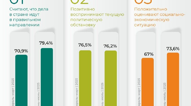 Июньский замер Института общественной политики показывает, что оценки развития страны остаются стабильными. Это свидетельствует о сохраняющемся общественном консенсусе относительно выбранного курса и устойчивости социальных настроений. Большинство респондентов (79,4%) считают, что страна движется в правильном направлении.