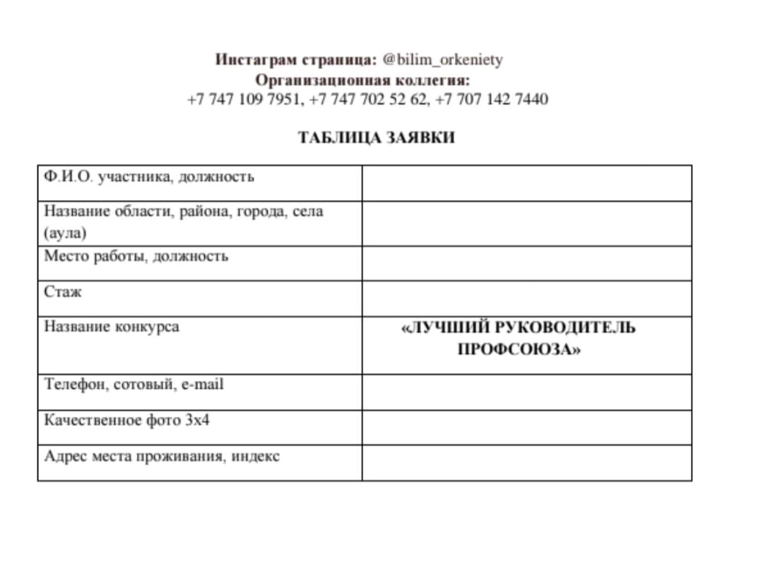 Документы принимаются до 15 марта 2026 года на электронную почту astana-20n@mail.ru либо на WhatsApp по номеру +7 747 109 7951.