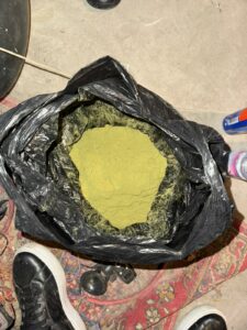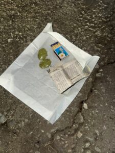 В ходе осмотра у задержанного были обнаружены и изъяты свёртки с веществом растительного происхождения зелёного цвета со специфическим запахом. Также аналогичное вещество полицейские нашли при обыске гаражного помещения, где находился подозреваемый.