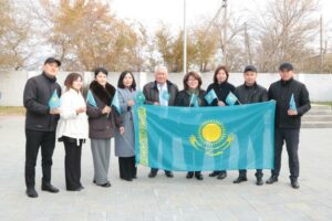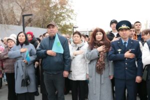 В руках присутствующих гордо развевался Государственный флаг Республики Казахстан – символ единства и независимости страны. Общая торжественная атмосфера объединила всех собравшихся, которые совместно исполнили государственный гимн, наполнив площадь гордостью и патриотизмом.