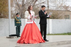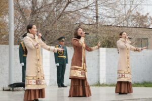 Мероприятие продолжилось концертной программой, в ходе которой творческие коллективы Дома культуры «Алтын дән» исполнили ряд патриотических песен, вызывающих трепет и гордость за свою Родину.