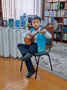 Завершилось мероприятие музыкальным подарком от воспитанника домбрового кружка Дома культуры «Алтын Дән» Ерали Талгатбекова.