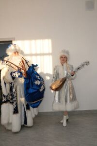 В этот же день в актовом зале состоялся небольшой праздничный концерт. В гости к собравшимся пришли Дед Мороз и Снегурочка, которые от имени акима Костанайского района торжественно вручили домбровому ансамблю казахские национальные инструменты – домбры. Этот подарок стал символом поддержки и уважения к традициям, вдохновляя музыкантов на новые творческие свершения.
