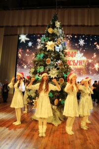 На торжестве гостей встречали главные волшебные персонажи зимних праздников – Дед Мороз и его очаровательная внучка Снегурочка. Их искренние поздравления и добрые пожелания создали атмосферу настоящей сказки, наполнили сердца радостью и теплом. Вместе с ними на сцену вышли и другие артисты, которые развлекали гостей веселыми конкурсами, песнями и танцами.