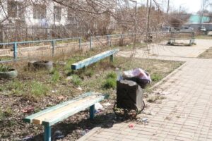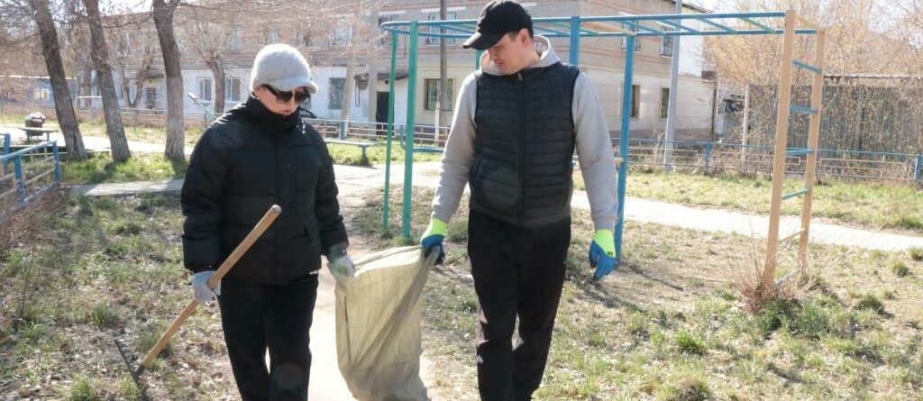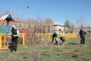 Сегодня жильцы многоэтажных домов по улице Тәуелсіздік собрались, чтобы навести порядок возле своих подъездов, в палисадниках и на детских площадках.