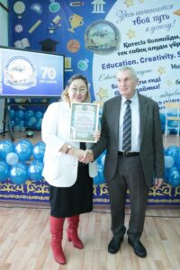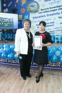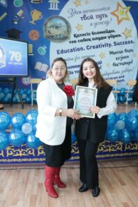 Далее грамоты от отдела образования Костанайского района были вручены учителю казахского языка и литературы Айжан Шокаевой, заместителю руководителя по воспитательной работе Наталье Ильиной и учителю английского языка Татьяне Бамбах.