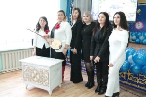 Награждение благодарственными письмами от Костанайского районного маслихата стало признанием заслуг учителей. На сцену вышли учитель русского языка и литературы Елена Карева, воспитатель мини-центра Галина Бомбик и делопроизводитель школы Нуржамал Кайрманова.