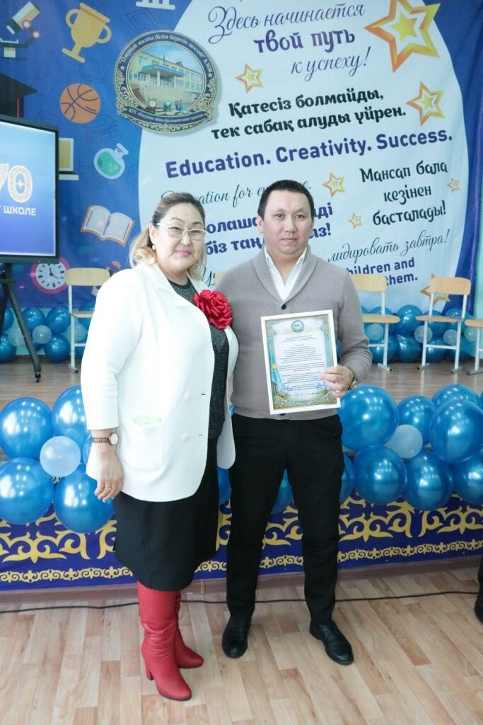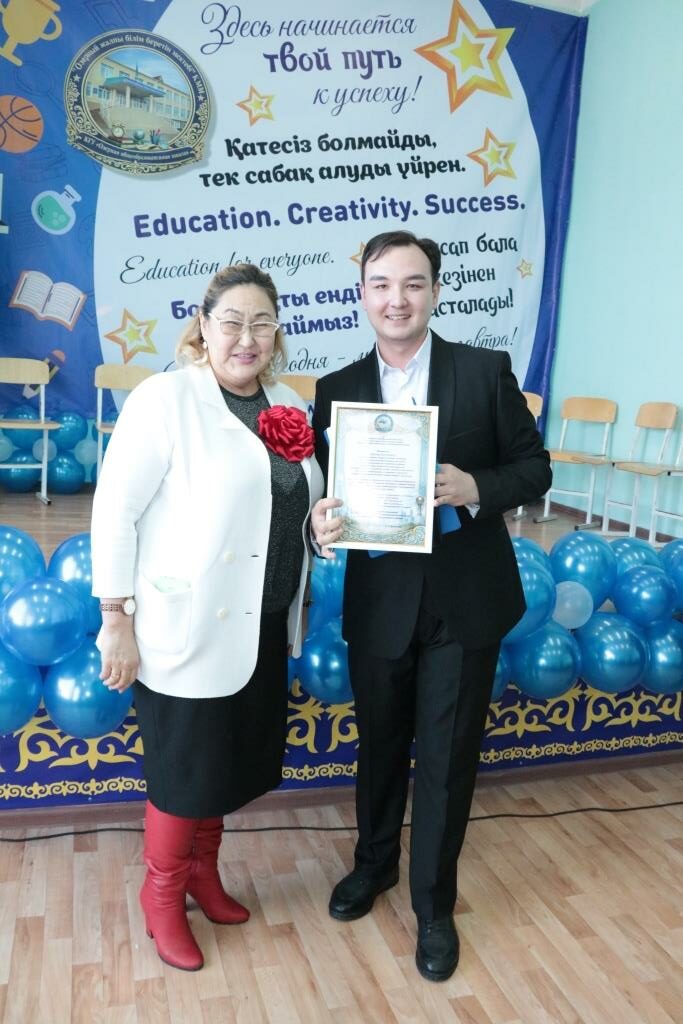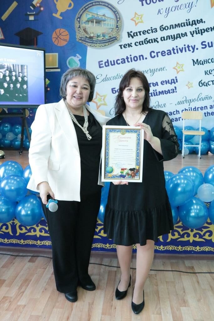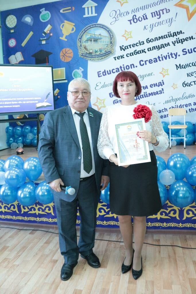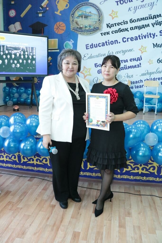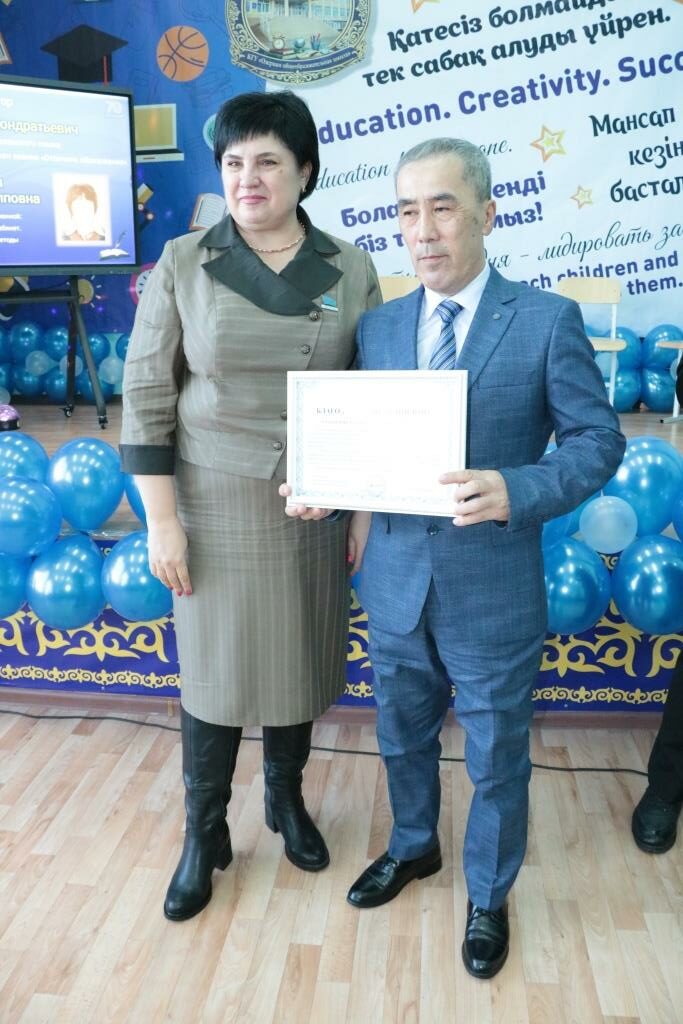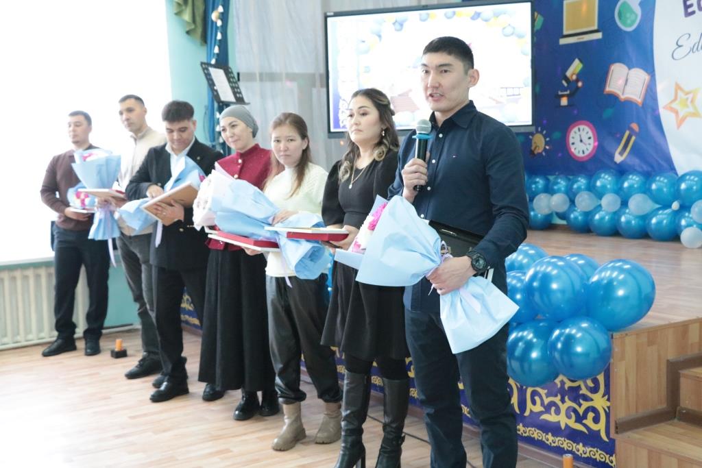 А благодарственными письмами от районного филиала партии AMANAT были отмечены воспитатель предшкольного класса Виктория Лебедева, социальный педагог Жантлеу Тасболатов и учитель математики Талгат Нугманов.