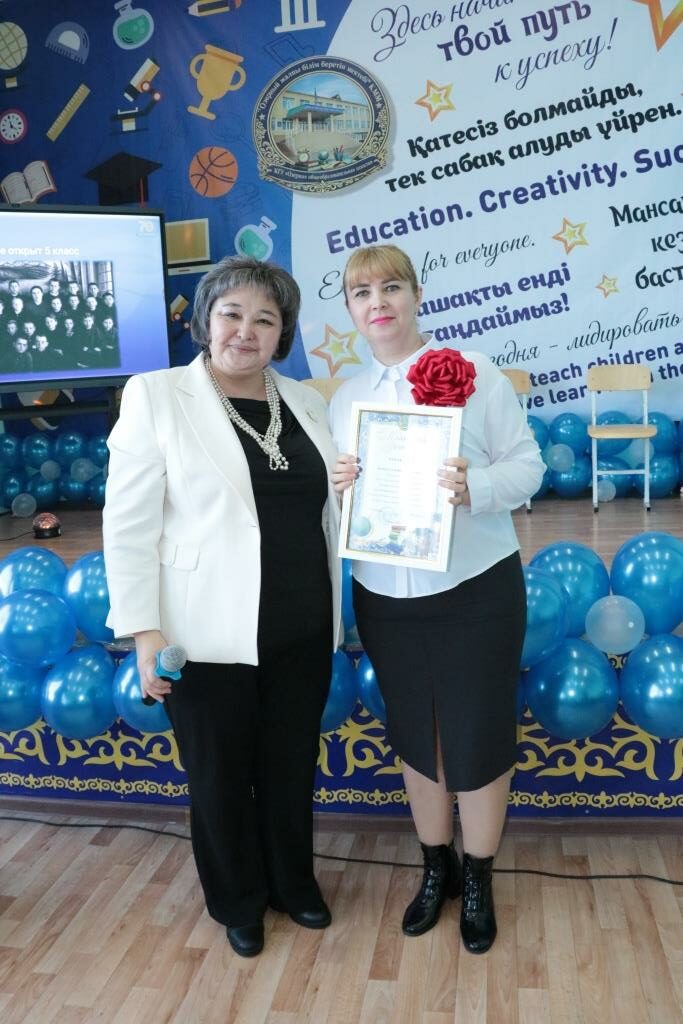 Далее грамоты от отдела образования Костанайского района были вручены учителю казахского языка и литературы Айжан Шокаевой, заместителю руководителя по воспитательной работе Наталье Ильиной и учителю английского языка Татьяне Бамбах.