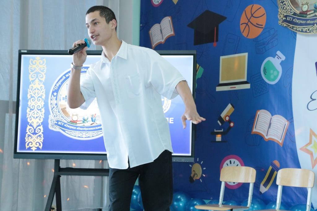 Праздничное мероприятие началось с торжественного гимна школы, который исполнил выпускник 2012 года Жантлеу Тасболатов – человек, для которого alma mater навсегда осталась частью сердца. Сегодня он продолжает свой путь в роли социального педагога, отдавая силы воспитанию новых поколений.