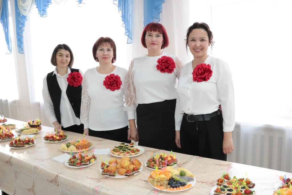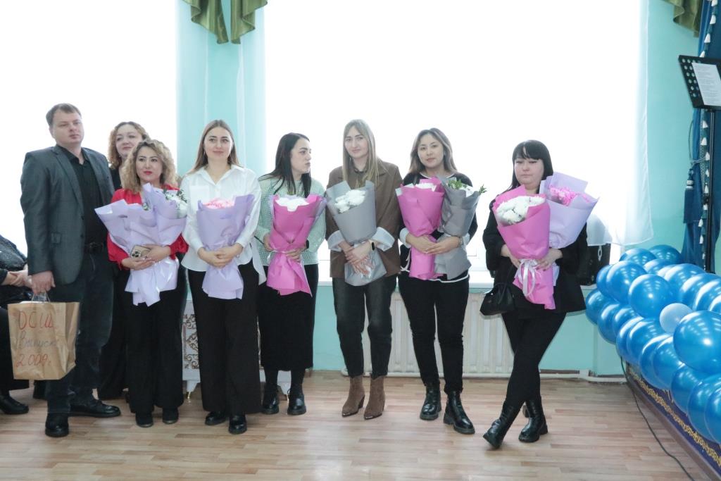 Награждение благодарственными письмами от Костанайского районного маслихата стало признанием заслуг учителей. На сцену вышли учитель русского языка и литературы Елена Карева, воспитатель мини-центра Галина Бомбик и делопроизводитель школы Нуржамал Кайрманова.