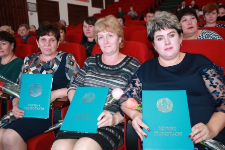 Грамоты акима Костанайской области за преданность своему делу и активную жизненную позицию были вручены социальным работникам Наталье Боженской, Галие Куликовой и Людмиле Расковаловой.
