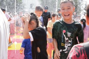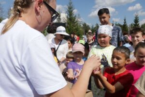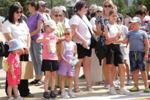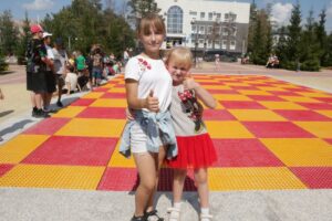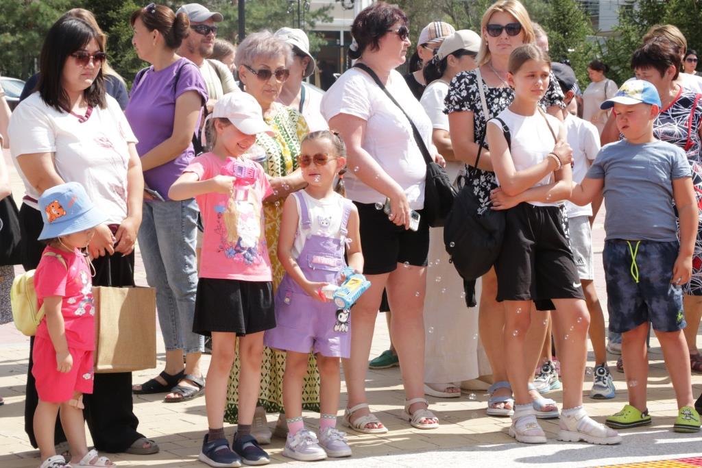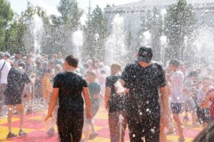 На открытии фонтана собрались и взрослые, и дети. Маленькие посетители с радостью резвились, смеясь и плескаясь в прохладных струях воды, а взрослые наслаждались моментом умиротворения и красоты. В этот день казалось, что город ожил – наполнился светом, водой и добрыми улыбками.