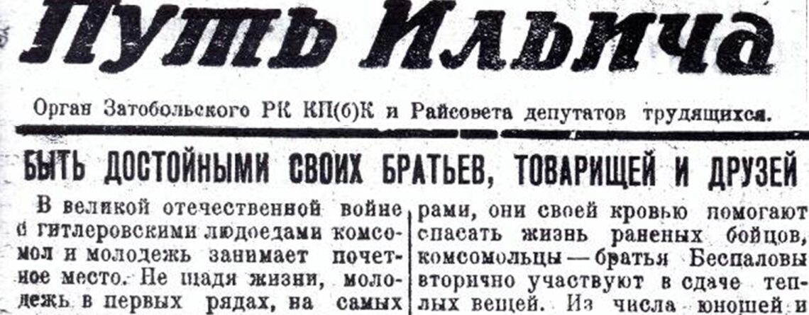 Тема доблестного труда детей периодически поднимается на страницах газеты. Вот и в номере от 16 мая 1942 года автор по фамилии (а может, под псевдонимом) Рейсов рассказывает о 12-летнем Грише Стеблянко и 13-летнем Вите Могильном, чьи отцы погибли на фронте.