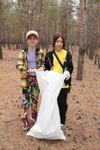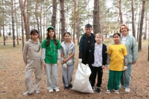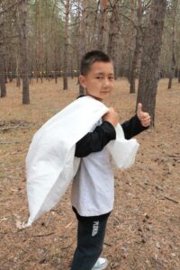 После этого ребята разделились на команды и приняли активное участие в экологической акции «Таза Өлке» – они собрали в мешки весь мусор, обнаруженный в лесу.