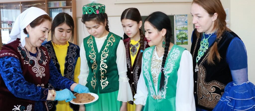 В связи с этим отделом образования Костанайского района и по инициативе администрации школы-гимназии им.Н. Наушабаева было организовано данное мероприятие. А помогли им в этом представители клубов «Әжелер», «Аналар» и «Жеңгелер», на плечи которых легла важная миссия – дать мастер-класс по национальному декоративно-прикладному искусству, рассказать о традициях, обрядах и обычаях казахского народа, о том, как красиво и правильно накрыть дастархан, подать и приготовить национальное блюдо, какие ингредиенты в старину использовали казахи…