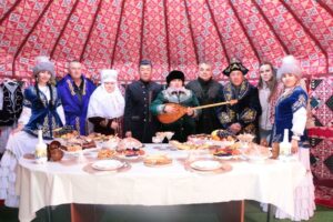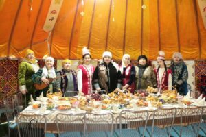В центре площади раскинулся белоснежный юрточный городок. С каждой юрты доносилась национальная музыка, а внутри были накрыты щедрые дастарханы с бесплатными угощениями для всех желающих. В этом году, как и всегда, представители акиматов города Тобыл, сельских округов, государственные учреждения и частные предприятия постарались на славу. Каждая юрта отражала быт казахского народа – убранство, декоративно-прикладное искусство, национальная еда и одежда создавали атмосферу традиционного праздника.