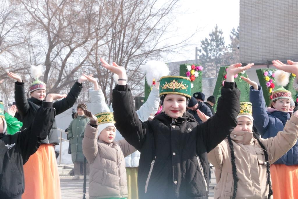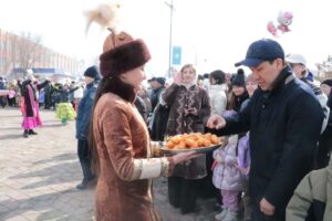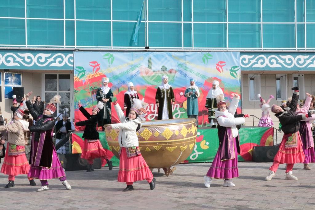 Массовое народное гулянье «Ұлттық мерекем – Әз Наурызым!» прошло на площади перед Домом культуры «Алтын дән», которая с раннего утра наполнилась весельем и смехом. Ясный солнечный день привлек множество гостей праздника.
