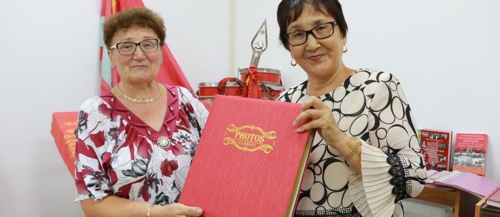 В завершение экскурсии председатель Совета ветеранов педагогического труда Костанайского района Магиза Наженова подарила Ираиде Говоровой альбом с фотографиями, на которых изображены ветераны педтруда на различных торжественных, культурных, праздничных мероприятий. А на одном из листов альбома – подписи с наилучшими пожеланиями от гостей экскурсии.