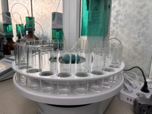 В одной из лабораторий внимание журналистов привлекает процесс подготовки почвы к анализу. На первый взгляд – обычная земля, но уже через несколько этапов она превращается в материал для высокоточных исследований.