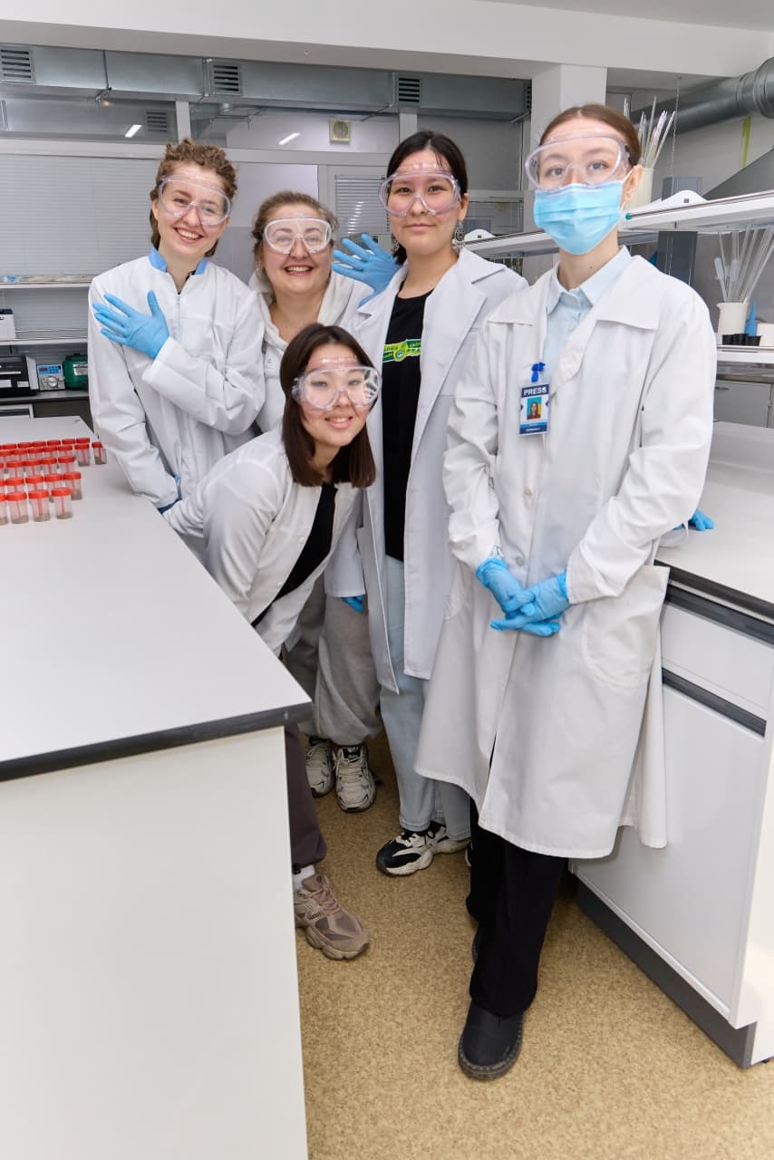 Гидами выступили сотрудники института – те, кто ежедневно работает с оборудованием, проводит анализы и реализует научные проекты. Среди них – директор института инновационных технологий КРУ Алия Ысқақ, проректор по исследованиям, инновациям и цифровизации Женис Жарлыгасов и его заместитель Берик Рахимбаев.