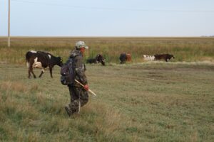 При этом труд пастуха, пожалуй, таков же, что и пятьдесят, и сто лет назад: верхом на коне, приглядывает за коровами, бычками, овцами и лошадьми. Утром собирает и выгоняет в поле, вечером пригоняет обратно. О том, что сегодня в крупных агропромышленных комплексах для контроля за местоположением крупного рогатого скота применяют датчики, которые позволяют в режиме реального времени отслеживать перемещение животных, знает. В курсе также, что для защиты стада от хищников используются электропастухи, представляющие собой систему столбов с натянутой между ними проволокой, по которой пропускается слабый электрический ток, отпугивающий потенциальных агрессоров. Но в небольшом частном хозяйстве, где трудится Берик, такие современные технологии пока что не применяют. Поэтому обходится он старинными, проверенными методами и опытом.